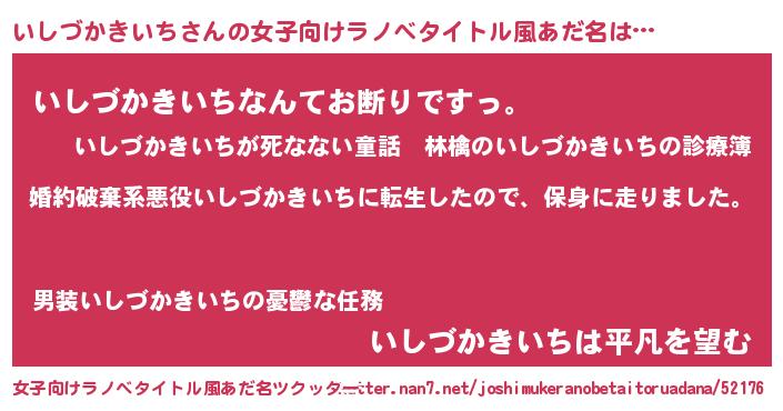 | 男性向けラノベタイトル風あだ名 | 『イシヅカキイチスレイヤー』 |