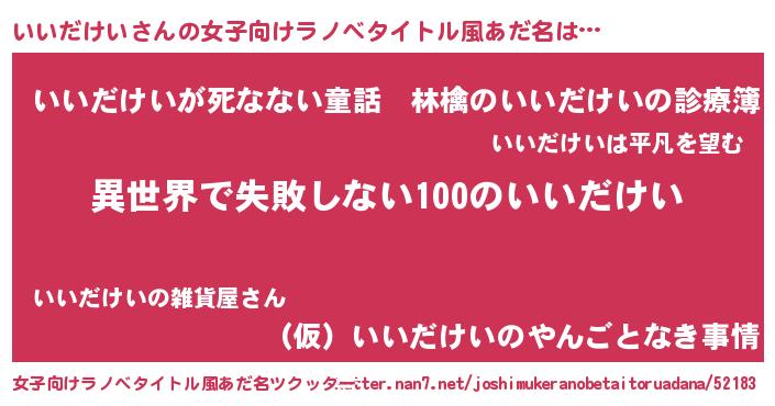 | ヘコむあだ名 | 『いいだけい(小並感)』『いいにゅー』 |
