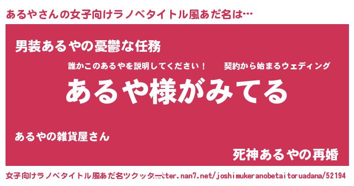 | 意味不明あだ名 | 『とにかく怪しいあるや』『自称あるや』 |