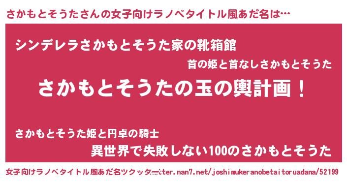 | 男性向けラノベタイトル風あだ名 | 『転生したらさかもとそうただった件』 |