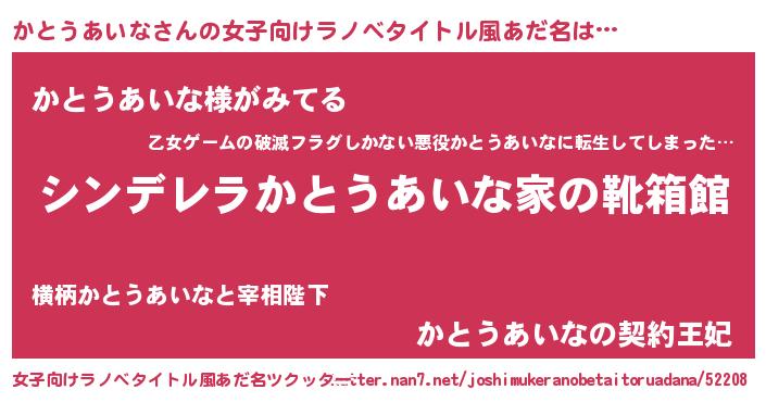 | 胡散臭い通販商品みたいなあだ名 | 『信頼と実績のネックレス…その名も「かとうあいな」』 |