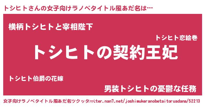 | 意味不明あだ名 | 『永久保存トシヒト』『自称トシヒト』 |