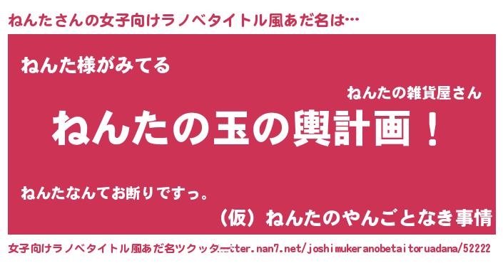 | 2回繰り返すあだ名 | 『わなわな』『ねちねち』『ねんねん』 |