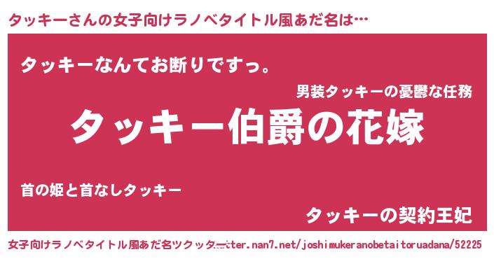 | ファンタジー風あだ名 | 『エターナルタッキーー』『ゼタットゥ』 |