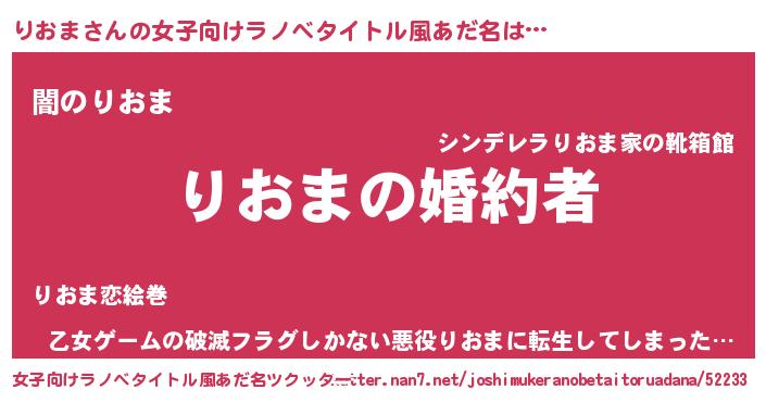 | 胡散臭い通販商品みたいなあだ名 | 『運命の人と巡り会える高級そうな壺…その名も「りおま」』 |