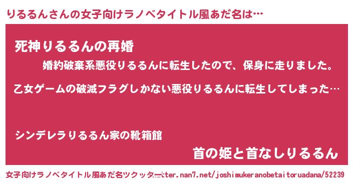 | ヒーロー風カッコイイあだ名 | 『仮面リルダー』『慈愛の使者りるるん』 |