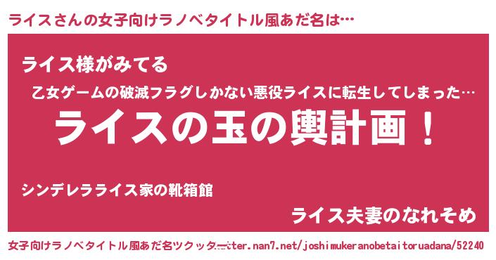| ヒーロー風カッコイイあだ名 | 『炎刃騎士ライ』『正義の使者ライス』 |