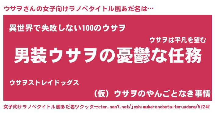 | 男性向けラノベタイトル風あだ名 | 『うちのウサヲが世界を掌握している!』 |