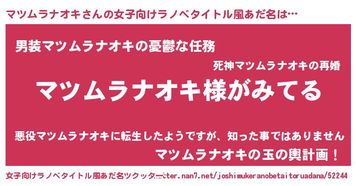| 男性向けラノベタイトル風あだ名 | 『マツムラナオキの嫁は女の子じゃないと思った?』 |