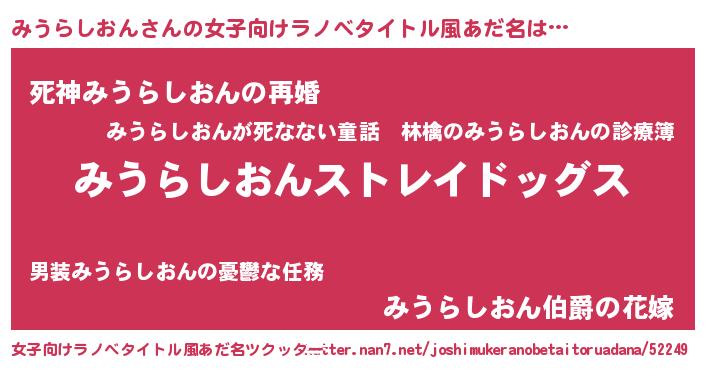 | 男性向けラノベタイトル風あだ名 | 『Re:みうらしおんから始める異世界生活』 |