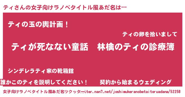 | 意味不明あだ名 | 『住所不定無職ティ(50歳)』『ニラ科ティ属』 |
