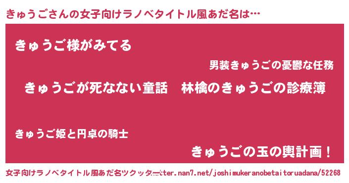 | ヒーロー風カッコイイあだ名 | 『仮面キュダー』『炎刃騎士キュ』 |