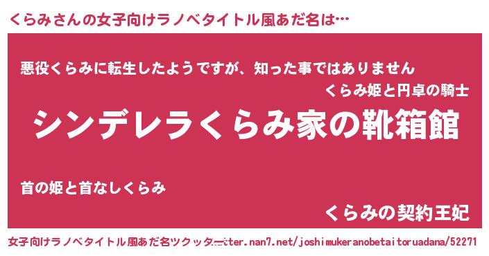 | ヘコむあだ名 | 『くらみ(笑)』『くらっふぃ~』 |