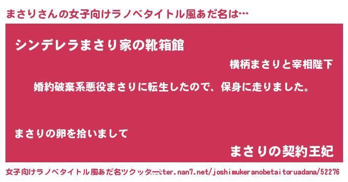 | 男性向けラノベタイトル風あだ名 | 『マサリスレイヤー』『緋弾のマサリ』 |