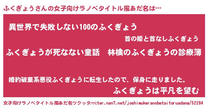 | 意味不明あだ名 | 『住所不定無職ふくぎょう(10歳)』 |