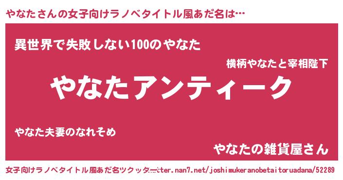 | 意味不明あだ名 | 『自称やなた』『永久保存やなた』 |