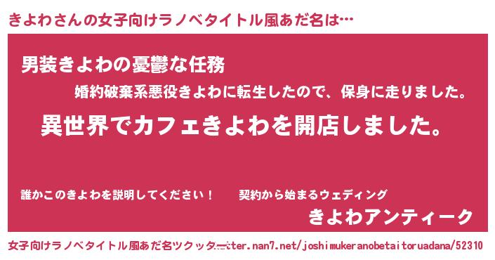| 胡散臭い通販商品みたいなあだ名 | 『前代未聞の健康食品…その名も「きよわ」』 |