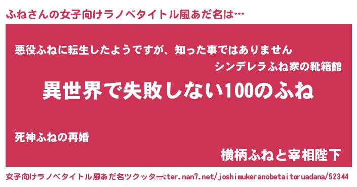 | 男性向けラノベタイトル風あだ名 | 『ふねという概念が存在しない退屈な世界 』 |