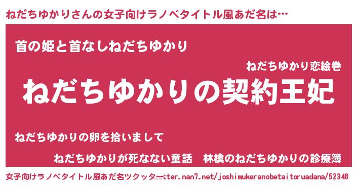 | 男性向けラノベタイトル風あだ名 | 『ねだちゆかりという概念が存在しない退屈な世界 』 |