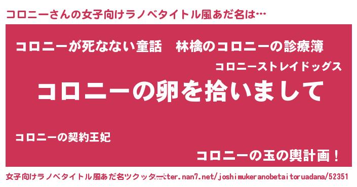 | 意味不明あだ名 | 『とにかく怪しいコロニー』 |