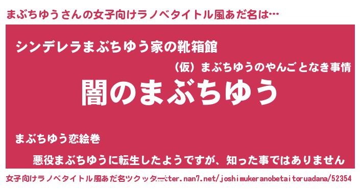 | 肩書あだ名 | 『まぶちゆう閣下』『まぶちゆう船長』 |