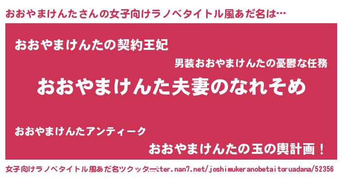 | 男性向けラノベタイトル風あだ名 | 『おまえをオタクにしてやるから、俺をおおやまけんたにしてくれ! 』 |