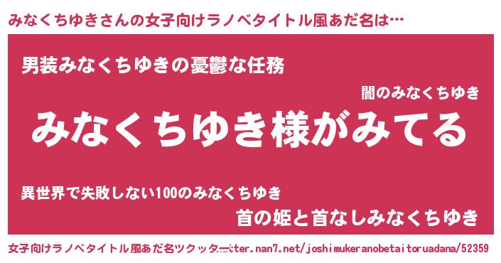 | 男性向けラノベタイトル風あだ名 | 『みなくちゆきの嫁は女の子じゃないと思った?』 |
