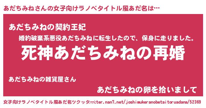 | 男性向けラノベタイトル風あだ名 | 『ノーゲーム・ノーアダチミネ』 |