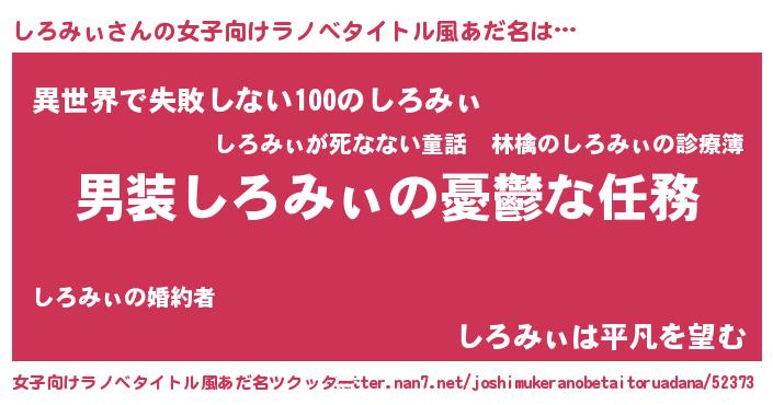 | 男性向けラノベタイトル風あだ名 | 『うちのしろみぃが世界を掌握している!』 |