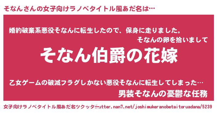 | 男性向けラノベタイトル風あだ名 | 『うちの娘の為ならば、俺はもしかしたらそなんも倒せるかもしれない。』 |