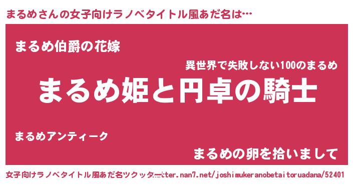 | 男性向けラノベタイトル風あだ名 | 『まるめの憂鬱』『魔法科高校のまるめ』 |