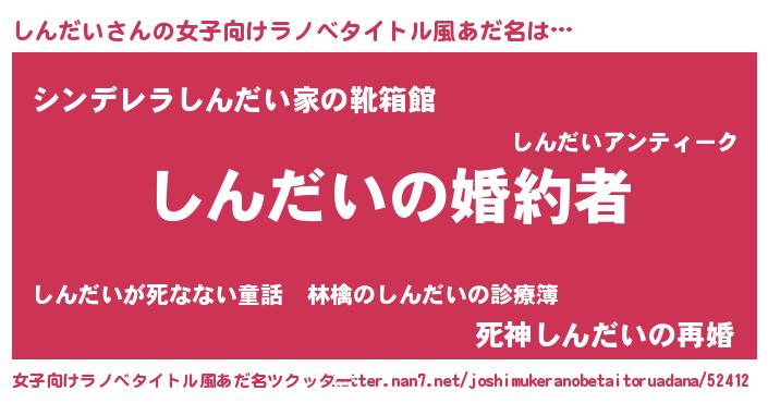 | 胡散臭い通販商品みたいなあだ名 | 『運命の人と巡り会える高級そうな壺…その名も「しんだい」』 |