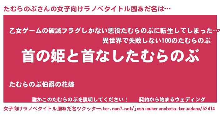 | 意味不明あだ名 | 『住所不定無職たむらのぶ(41歳)』 |