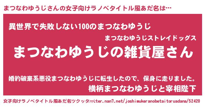 | 男性向けラノベタイトル風あだ名 | 『やはりまつなわゆうじの青春ラブコメはまちがっている 』 |