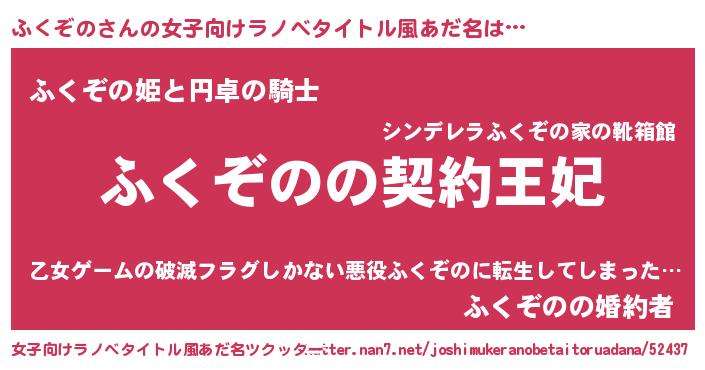 | 胡散臭い通販商品みたいなあだ名 | 『来世でも幸せになれる健康食品…その名も「ふくぞの」』 |