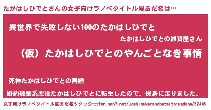| 胡散臭い通販商品みたいなあだ名 | 『必ず成功する霊験あらたかなお札…その名も「たかはしひでと」』 |