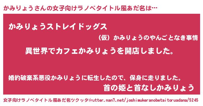 | 男性向けラノベタイトル風あだ名 | 『誰もが恐れるあのかみりょうが、ぼくの専属メイドになるようです。』 |