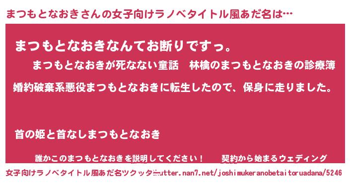 | 男性向けラノベタイトル風あだ名 | 『マツモトナオキスレイヤー』 |