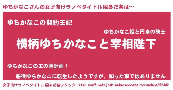 | 男性向けラノベタイトル風あだ名 | 『ゆちかなこに滅ぼされるだけの簡単なお仕事です』 |