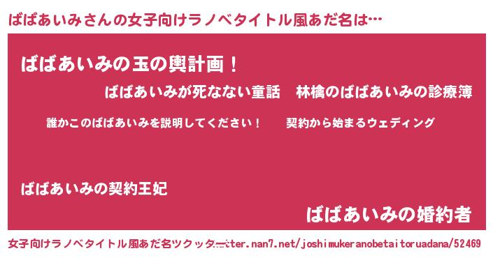 | 胡散臭い通販商品みたいなあだ名 | 『億万長者になれる水晶球…その名も「ばばあいみ」』 |