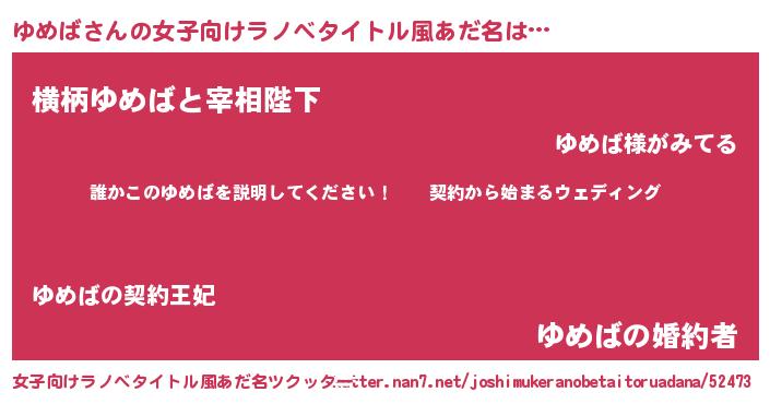 | 胡散臭い通販商品みたいなあだ名 | 『億万長者になれるブレスレット…その名も「ゆめば」』 |