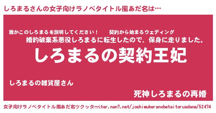 | 男性向けラノベタイトル風あだ名 | 『誰もが恐れるあのしろまるが、ぼくの専属メイドになるようです。』 |