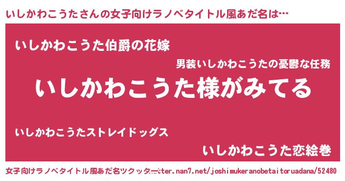 | 男性向けラノベタイトル風あだ名 | 『いしかわこうたの嫁は女の子じゃないと思った?』 |