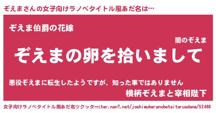 | 男性向けラノベタイトル風あだ名 | 『ぞえまの嫁は女の子じゃないと思った?』 |