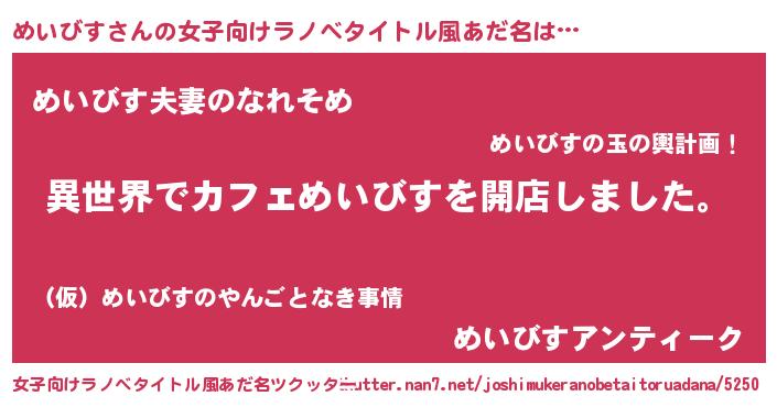 | 意味不明あだ名 | 『永久保存めいびす』『自称めいびす』 |