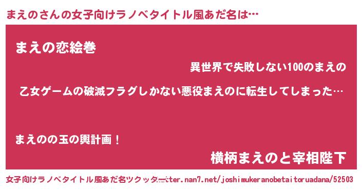 | 男性向けラノベタイトル風あだ名 | 『魔弾の王とまえの』 |