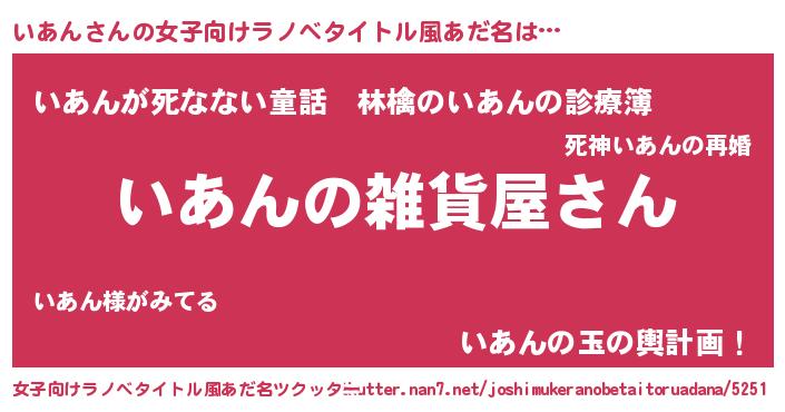 | 胡散臭い通販商品みたいなあだ名 | 『幸せが訪れる高級そうな絵画…その名も「いあん」』 |