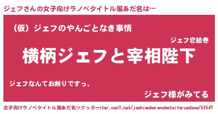 | 意味不明あだ名 | 『ペロリンジェフ』『自称ジェフ』 |