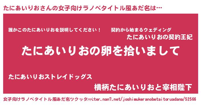 | 男性向けラノベタイトル風あだ名 | 『たにあいりおの嫁は女の子じゃないと思った?』 |