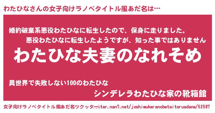 | 男性向けラノベタイトル風あだ名 | 『おまえをオタクにしてやるから、俺をわたひなにしてくれ! 』 |